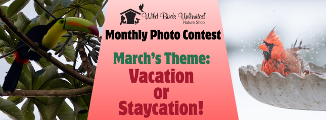 Our monthly themed contest encourages you to share your wild bird photos, whether they are captured with your phone or a fancy camera! Each month we will share a theme to spark your creativity, and we invite you to share the wild bird moments in nature that inspire you. Every wild bird photo you submit (up to 10 per month) will be entered into a random draw for a $50 WBU gift card.